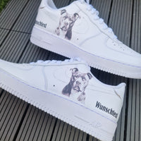 Jedes einzelne Paar wird mit höchster Präzision und Sorgfalt per Hand veredelt, somit sind sie mit keinem anderen Paar identisch und du erhältst dein eigenes Unikat. Dies ist ein Veredelung- bzw. Anpassungsservice. Die Kosten für den Custom Sneaker beinhalten eine Beschaffungsgebühr für das Basispaar „Air Force 1“ in der bestellten Größe. Jedes einzelne Paar wird auftragsbezogen von uns per Hand veredelt.