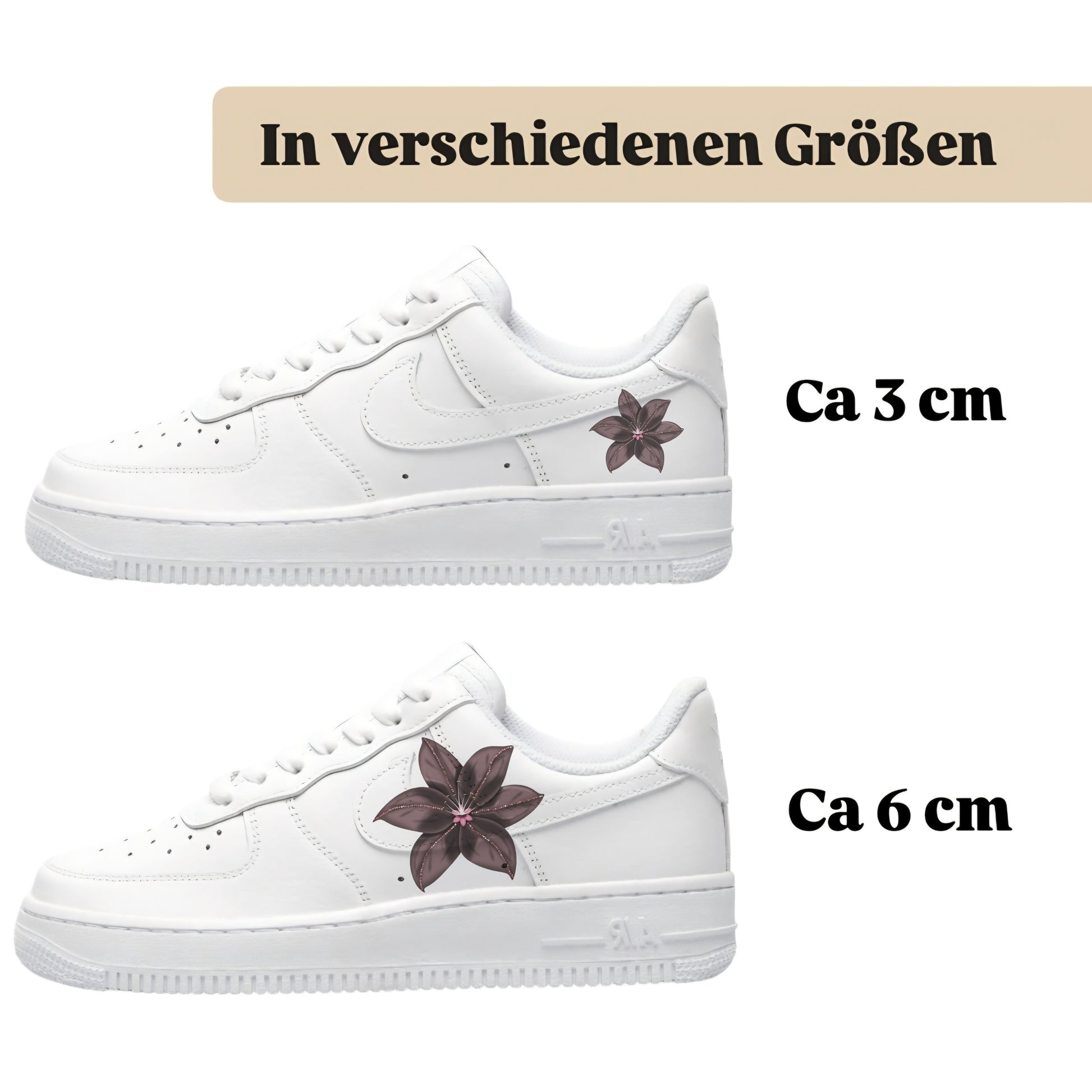• Einfach nur ein Traum, was man damit alles anstellen kann. Hab mir die Schmetterlinge und Rosen geholt und auf meine Nike Schuhe kombiniert - es ist wunderschön geworden und für wenig Geld habe ich jetzt einfach meine individuellen eigenen Sneaker. Ganz viele Leute sprechen mich darauf an und ich empfehle euch an jeden weiter. Ihr seit die Besten und der Support über Insta total nett und freundlich