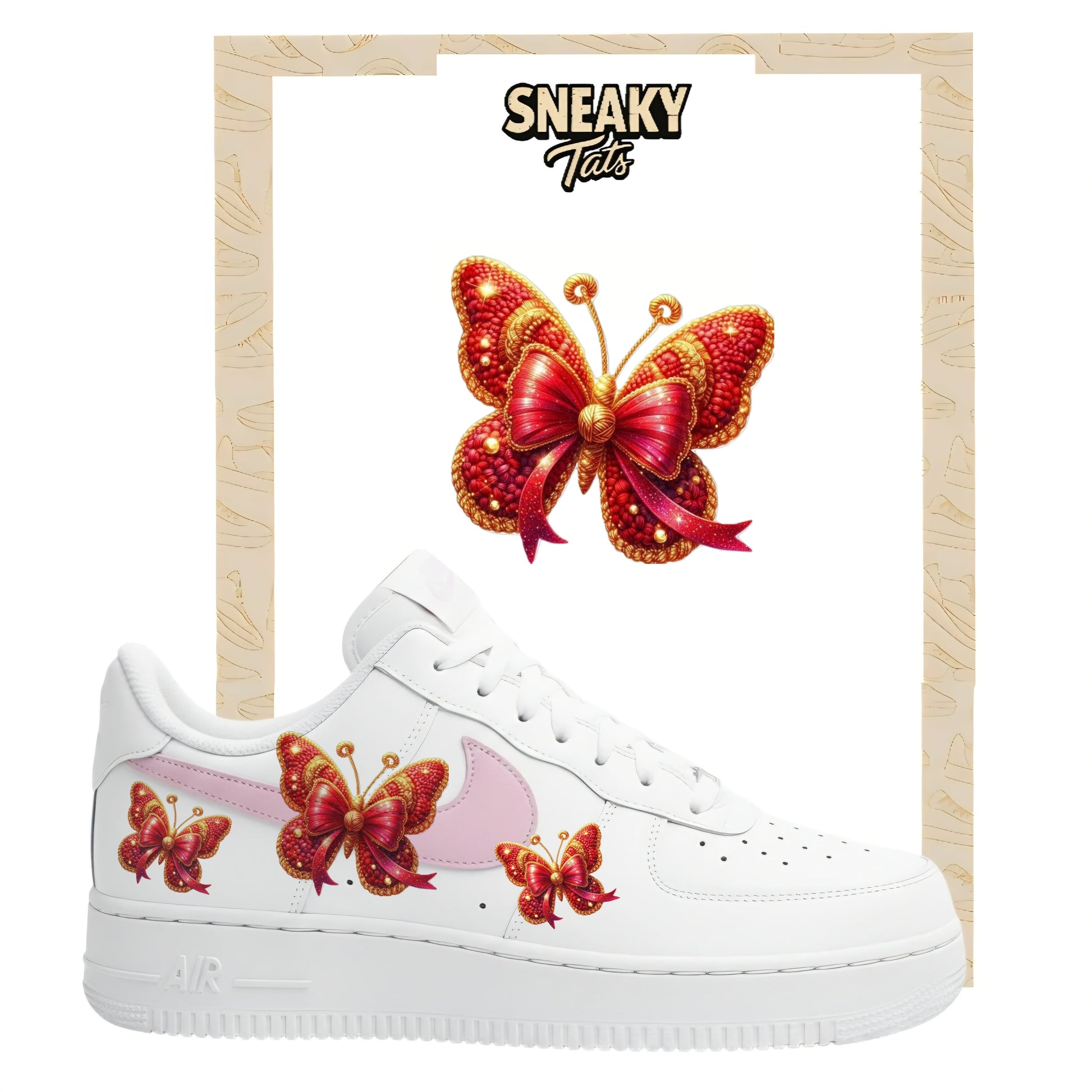 • Einfach nur ein Traum, was man damit alles anstellen kann. Hab mir die Schmetterlinge und Rosen geholt und auf meine Nike Schuhe kombiniert - es ist wunderschön geworden und für wenig Geld habe ich jetzt einfach meine individuellen eigenen Sneaker. Ganz viele Leute sprechen mich darauf an und ich empfehle euch an jeden weiter. Ihr seit die Besten und der Support über Insta total nett und freundlich